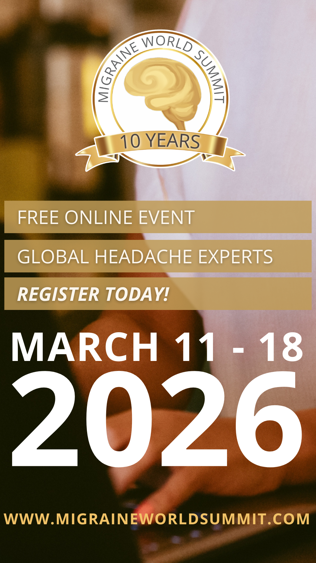 The 2026 Migraine World Summit brings together 32 world-leading experts to share the latest research, treatments, and strategies for managing migraine and improving quality of life. This free, virtual event offers your audience an unparalleled opportunity to gain control over their migraine journey. We are proud to be an affiliate to help spread the word.