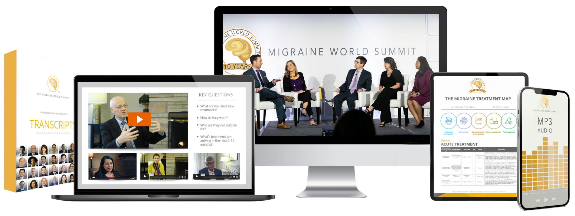 The Summit is delivered to you via a private online portal and for those who select the Boxed Set, a physical copy is ALSO delivered to your door with a USB copy of the recordings and a bound book of the transcripts and migraine toolkit. The Boxed Set is posted via mail to your nominated address.